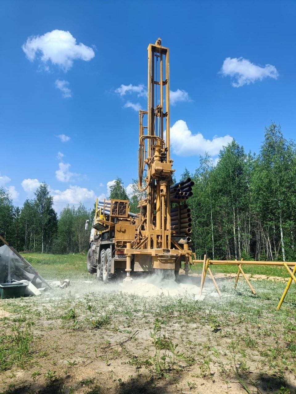 Бурение скважины на воду быстро с аккуратным заездом на участок. Работы начинаются сразу же по заходу техники. Скважину 70-90 метров бурим за один день.